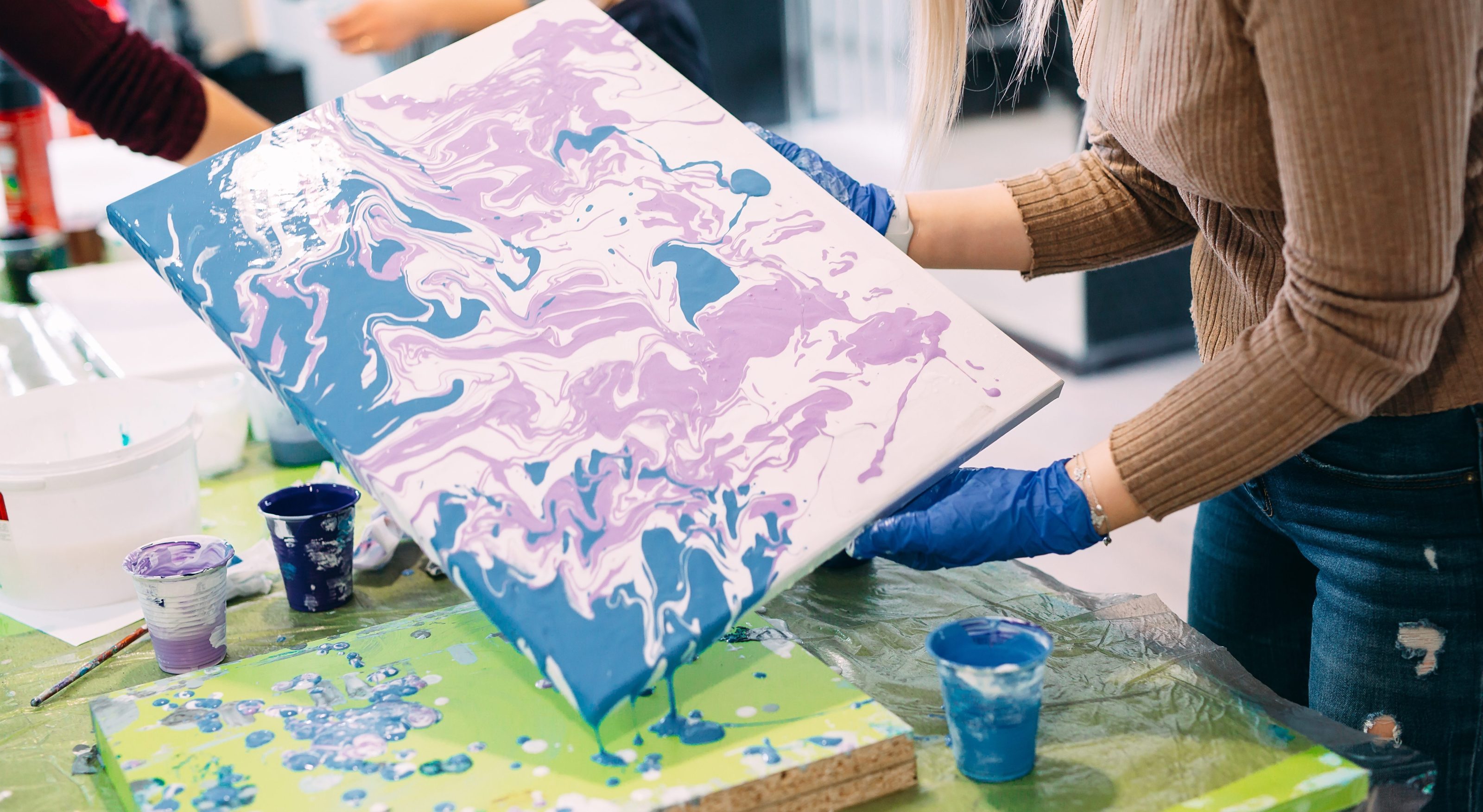 Yes, but acrylic pour paintings take time to dry. You may need to leave your artwork at the venue for drying or transport it carefully. The instructor will provide guidance on how to safely take it home.