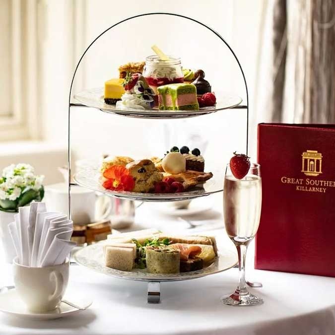 Afternoon Tea at the Great Southern Hotel Killarney is a truly elegant experience, steeped in tradition and charm. Served in the stunning Arbour, guests can indulge in a beautifully presented selection of delicate finger sandwiches, freshly baked scones with cream and homemade preserves, and an array of exquisite pastries and sweet treats. Each bite is perfectly paired with a choice of fine teas or freshly brewed coffee, and for an extra touch of indulgence, a glass of champagne can be added. With impeccable service and a refined yet relaxed atmosphere, Afternoon Tea at the Great Southern is a delightful escape into timeless luxury.