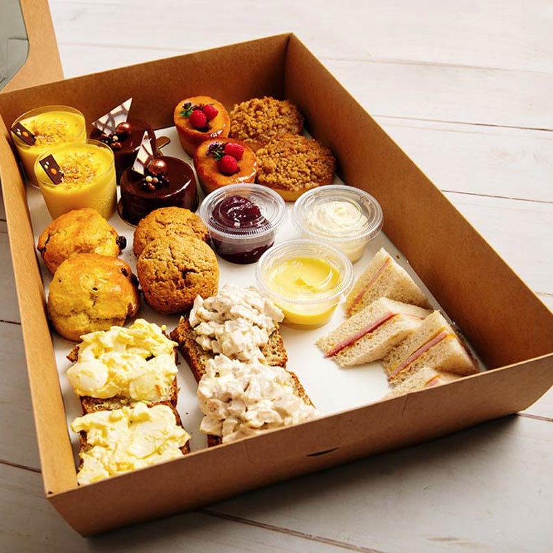 All the delights of Afternoon Tea are lovingly presented in a neat box for you to collect and enjoy.