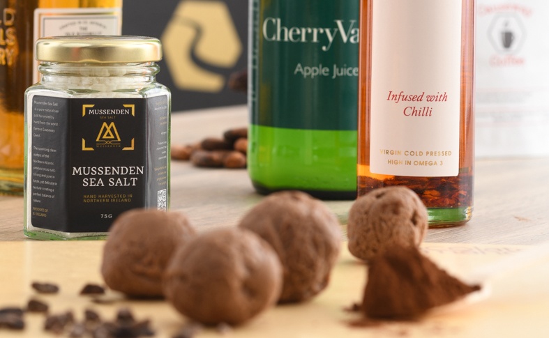 - Broighter Gold Rapeseed Oil – multi-award-winning oil, with the oilseed grown and bottled just fifteen miles from our workshop. We have crafted an amazing dark chocolate and chilli truffle using their stunning chilli oil.